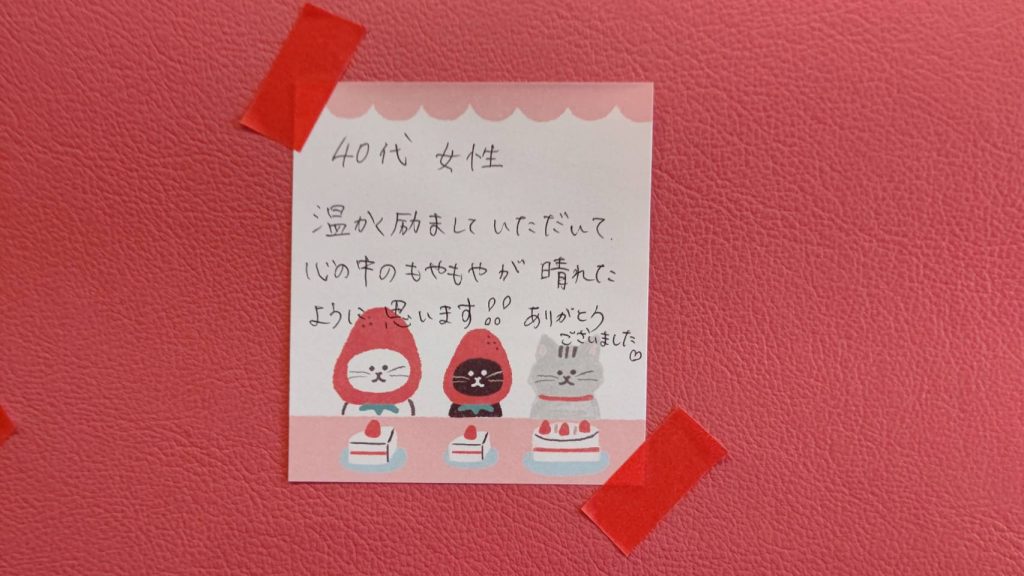 温かく励ましていただいて、心の中のもやもやが、晴れたように思います!!