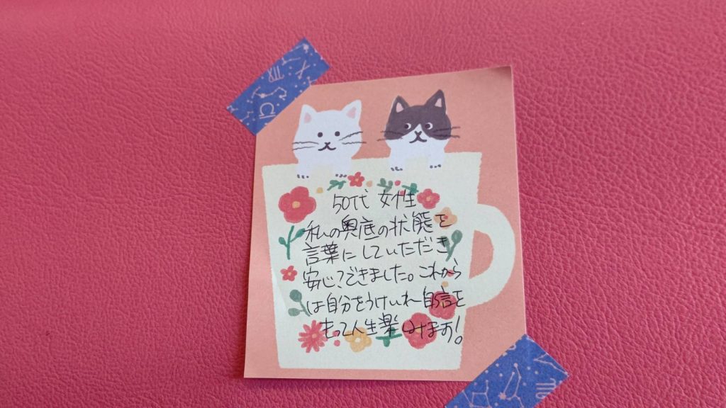 50代 女性:私の奥底の状態を言葉にしていただき安心できました