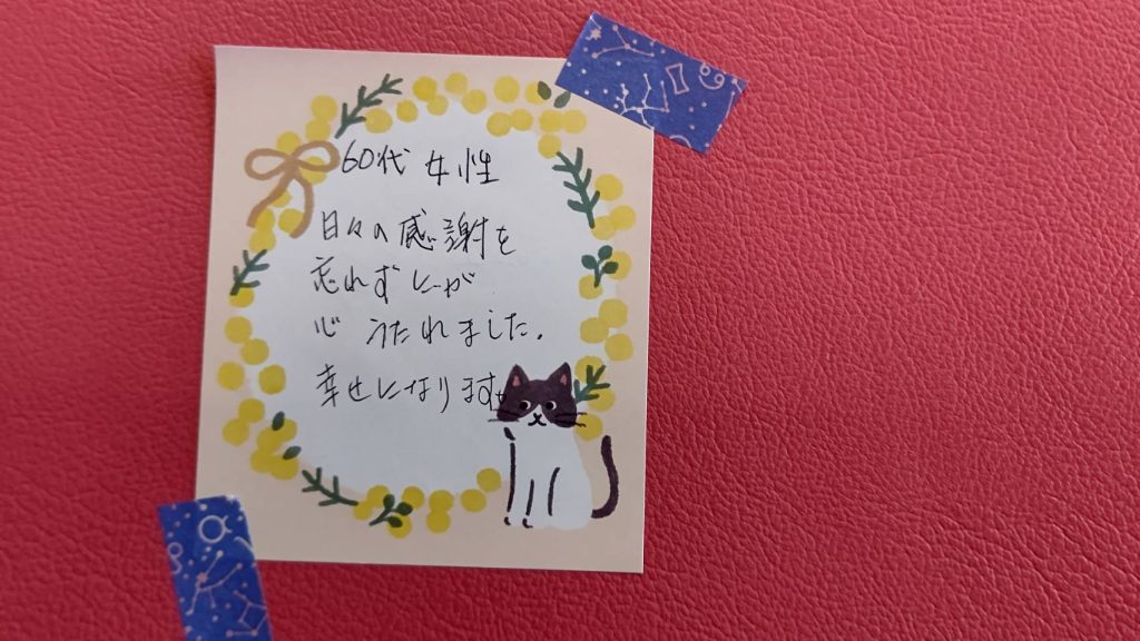 日々の感謝を忘れずにが、心うたれました。