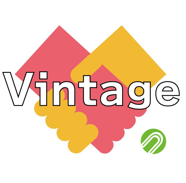 占い&テニスカフェヴィンテージvintageのロゴを作成しました。ハートと手をモチーフにしてみました。