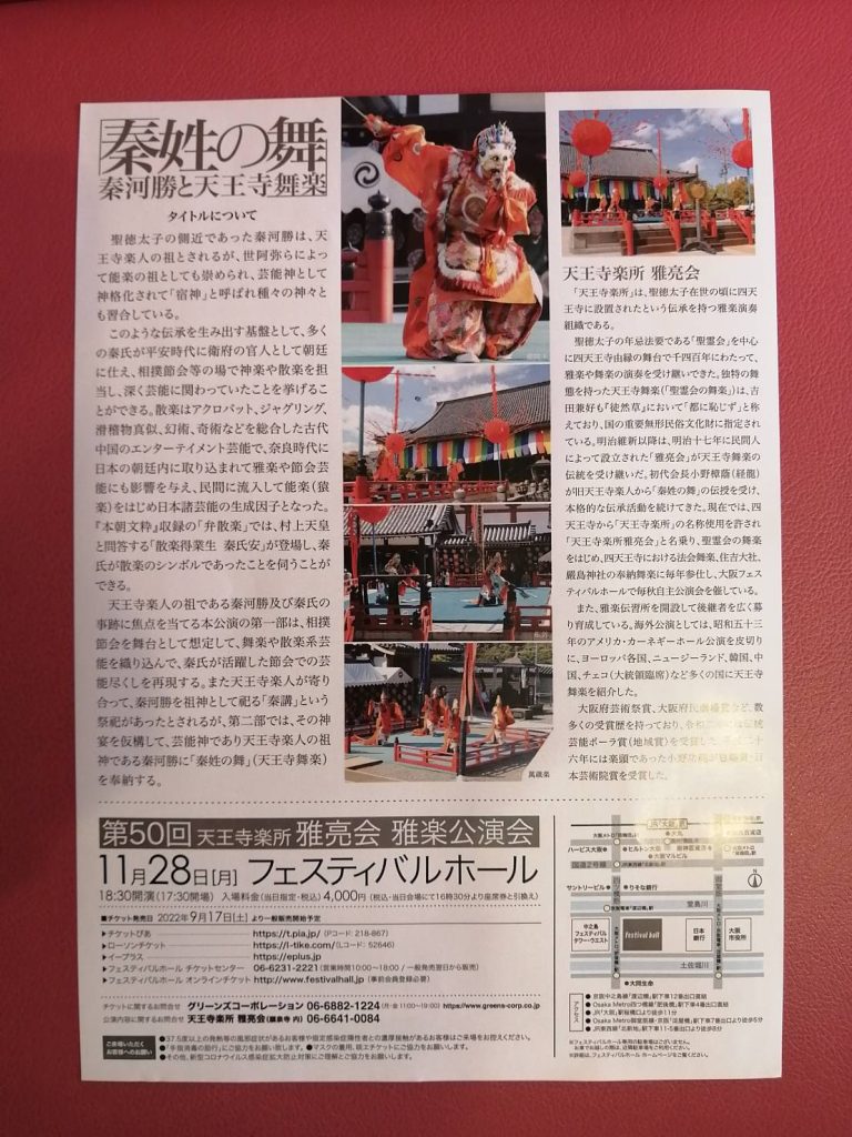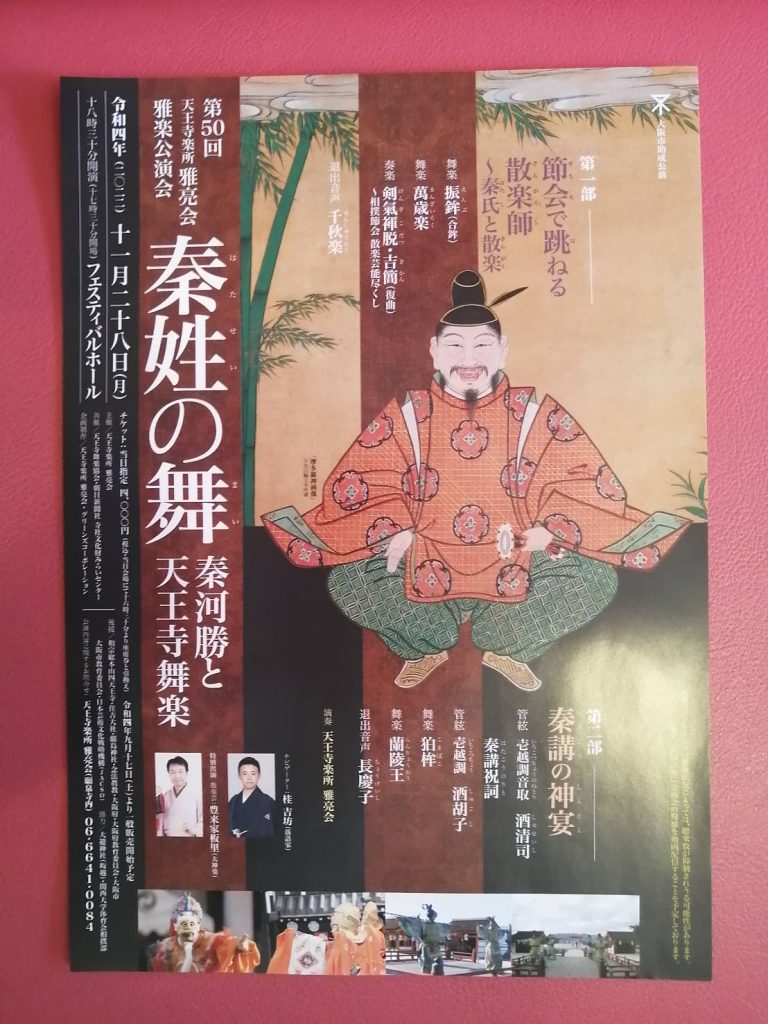 第50回天王寺楽所雅亮会雅楽講演会~秦姓の舞~秦河勝と天王寺舞楽が開催されます!