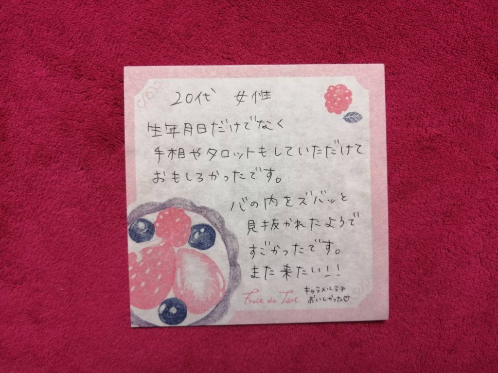 心の内をズバッと見抜かれたようですごかったです。また来たい!!