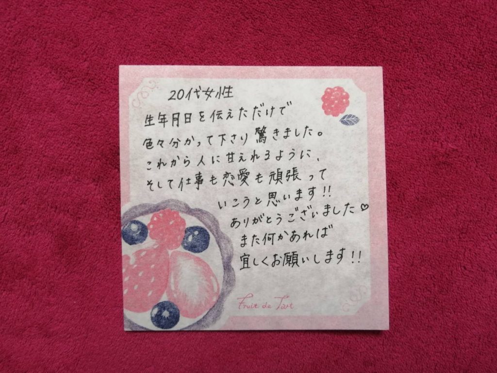 生年月日を伝えただけで色々分かって下さり驚きました。