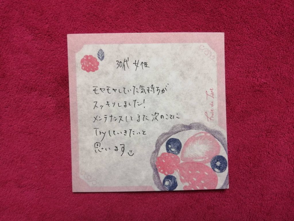 30代女性 モヤモヤしていた気持ちがスッキリしました